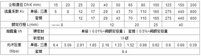rated flow coefficient Kv, rated stroke, leakage, allowing the pressure