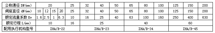 额定流量系数Kv、额定行程、配用执行机构型号、允许压差