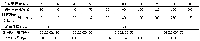 额定流量系数Kv、额定行程、配用执行机构型号、允许压差