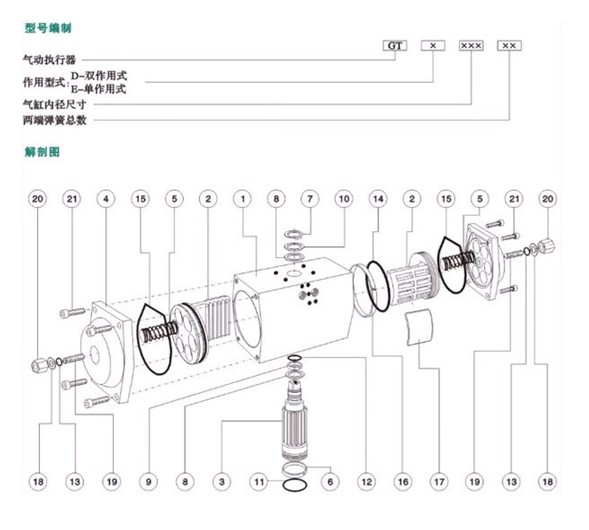1、GT系列气动执行器可与阀门直接连接,也可通过支架和接头与阀门安装连接。