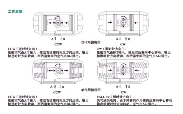 紧凑的双活塞齿轮,齿条式结构,啮合精确,传动平稳,输出扭矩稳定。|||