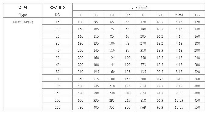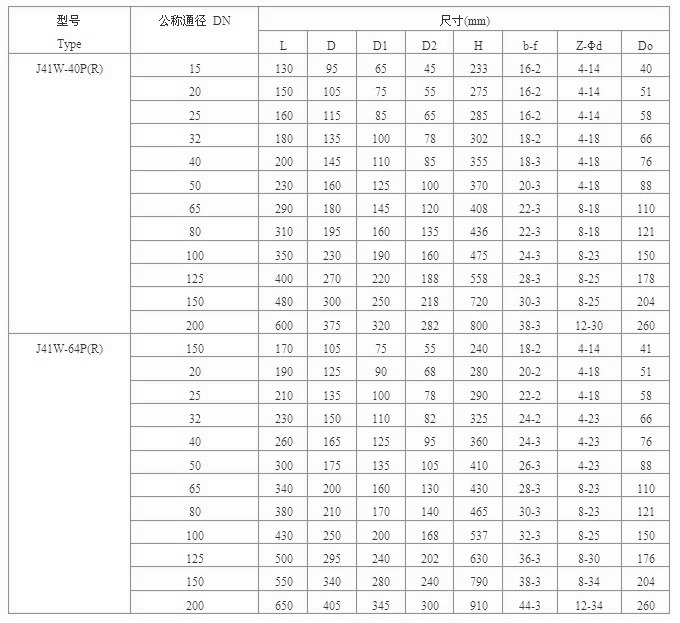 主要连接尺寸和外形尺寸(1.6Mpa)