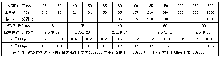 额定流量系数Kv、额定行程、配用执行机构型号、允许压差